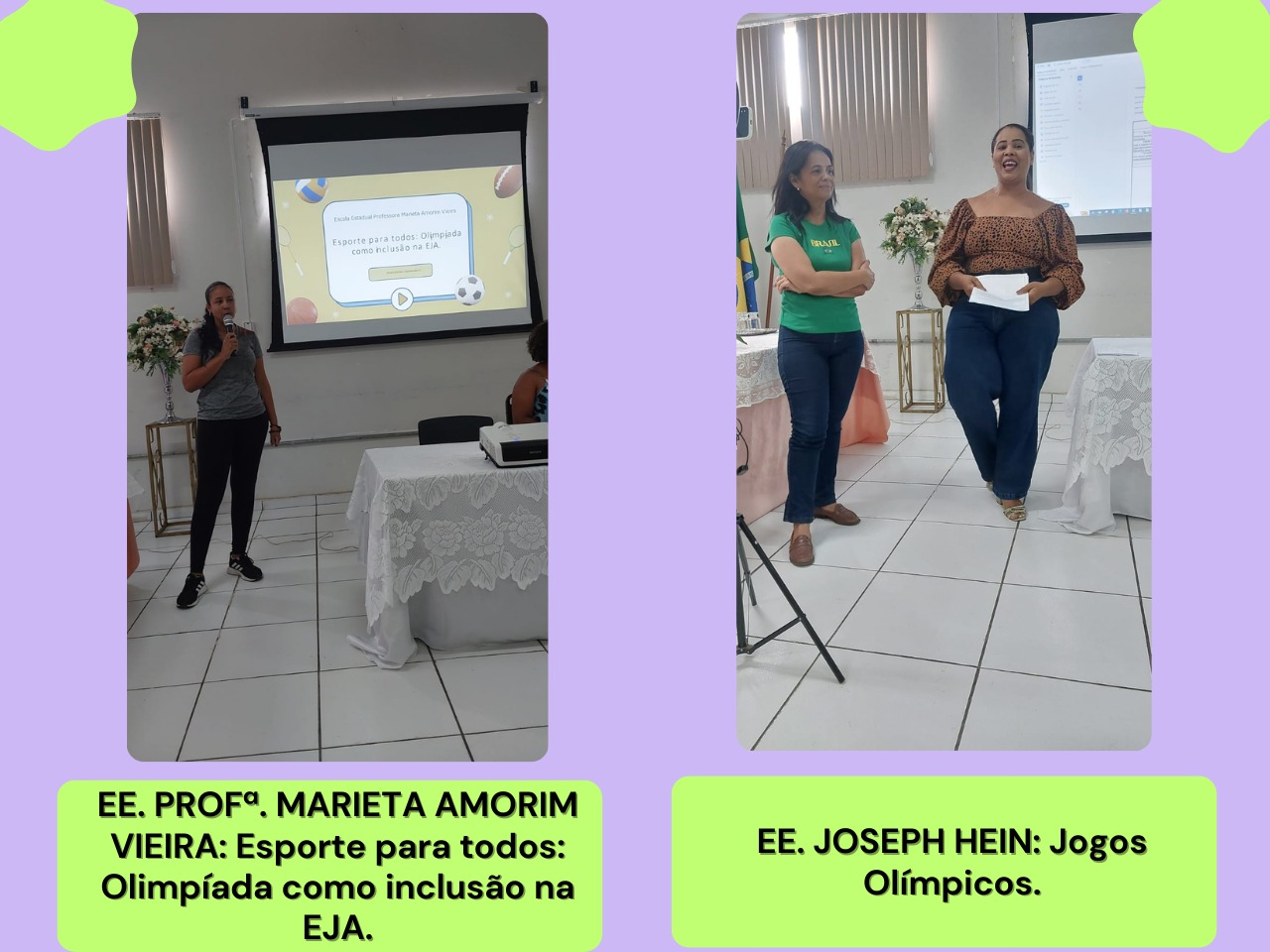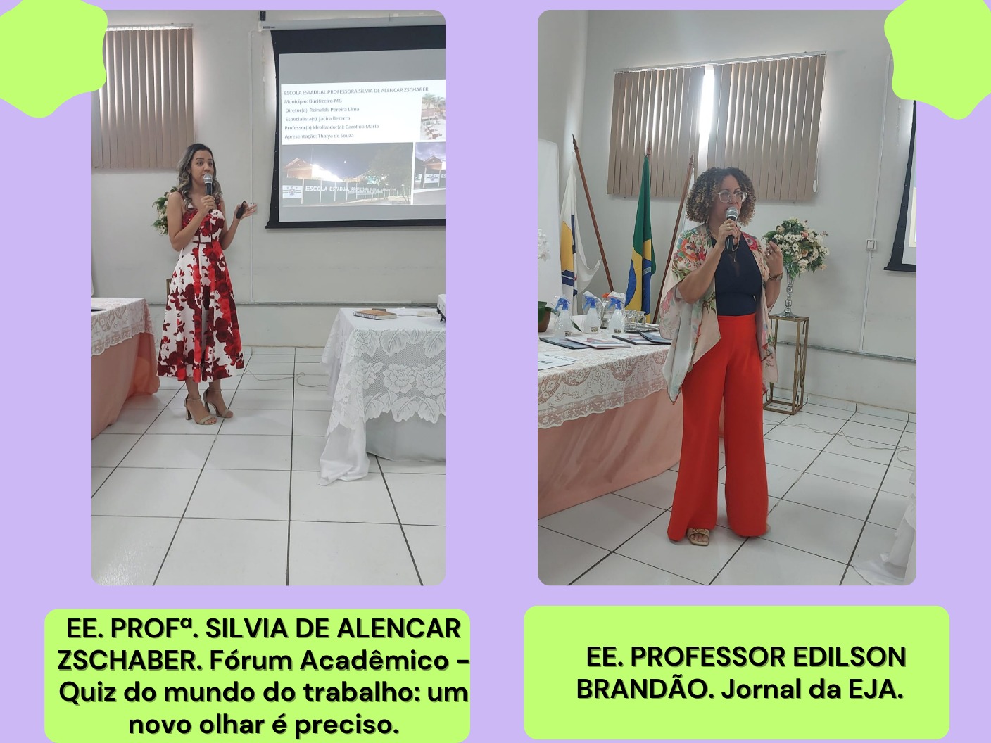 A programação teve início com a fala da coordenadora Juliana Fagundes, seguida das falas de boas vindas da Diretora Educacional, Sra. Eldaronice Alvarenga e da Superintendente de Regional de Ensino, Sra. Heloísa Gribel. Houve a presença de representantes de todas as instituições da rede ofertantes da EJA e apresentação de 07 trabalhos enviados para exporem as boas práticas adotadas em 2024.