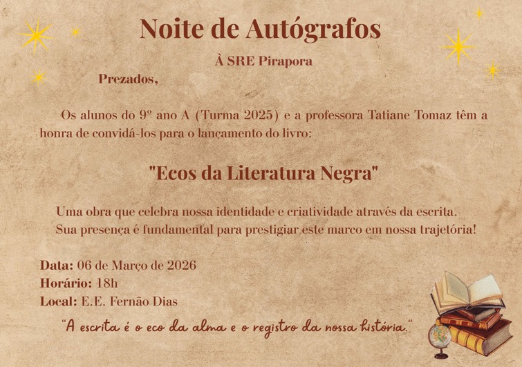 Noite de autógrafos celebra jovens escritores na Escola Estadual Fernão Dias